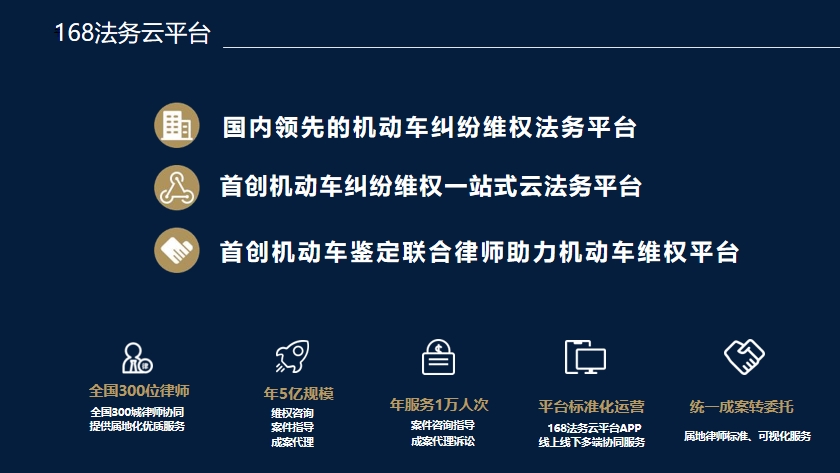 168机动车云法务平台是顺应时代发展和行业需求,精心打造的创新型法律服务平台。当前,机动车鉴定评估行业发展迅速,各类机动车纠纷案件日益频繁,随之而来的法律风险与纠纷不断增加。传统法务服务模式在应对这些复杂多变的问题时,常显效率低下、成本高昂等弊端。在此背景下,168机动车云法务平台应运而生。该平台依托168机动车涉案鉴定连锁机构、168鉴定通平台的优势及大数据、人工智能技术,整合优质法律资源,致力于为机动车鉴定评估行业提供一站式、智能化、低成本、高效便捷的法务解决方案。将人民群众的纠纷化解在萌芽状态。
